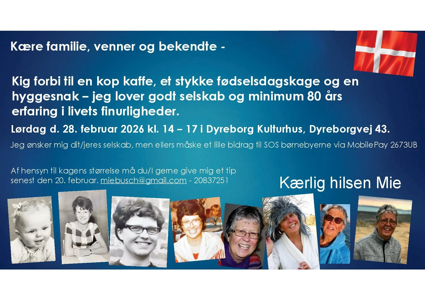 Vil I give lyd på mail eller sms (23237233) om I kan komme, så bager jeg en kage…………..