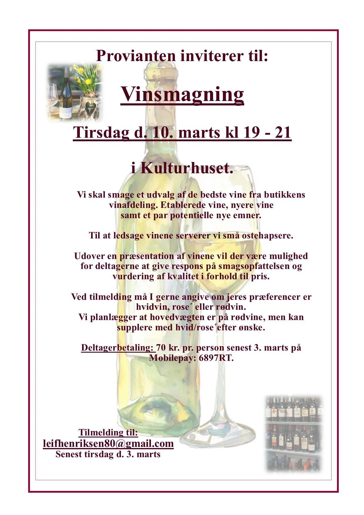 Provianten inviterer alle vores kunder til vinsmagning